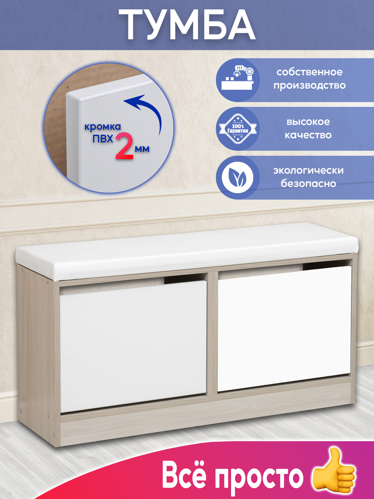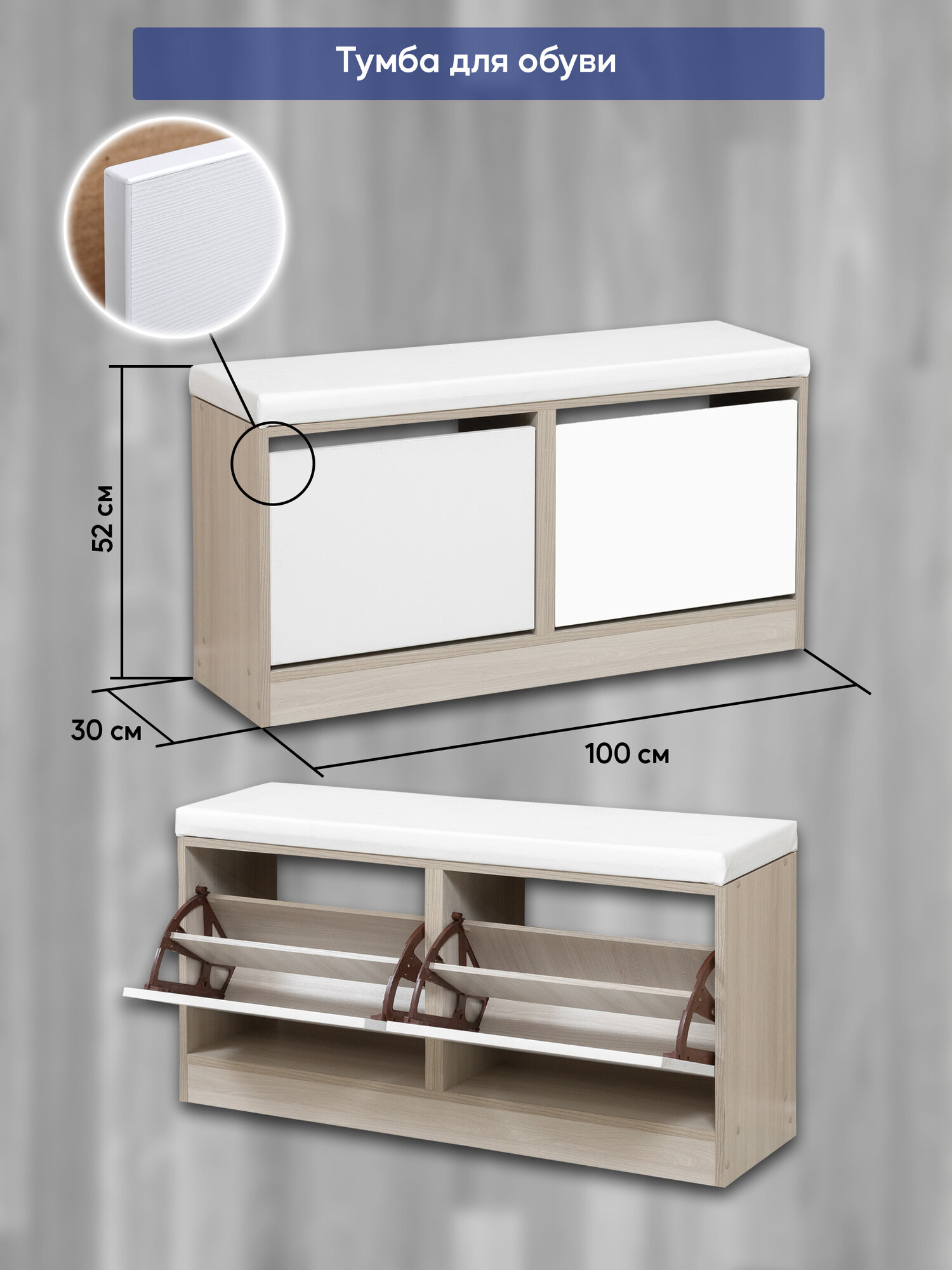 Тумба для обуви №23, обувница (ясень шимо светлый/белый), Курскмебель интересное: