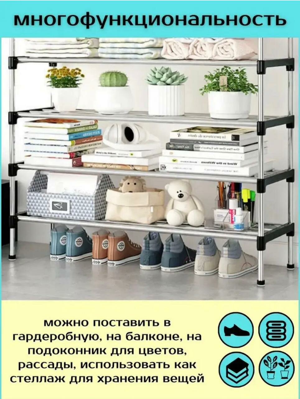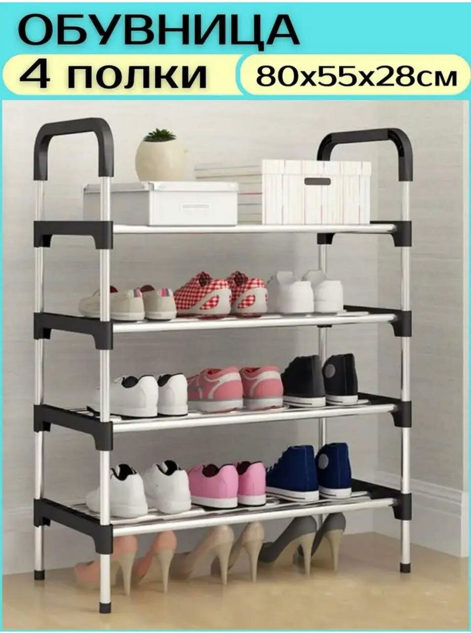 Обувница, 4 полок, этажерка для обуви, стеллаж металлический, галошница, мебель в прихожую интересное: