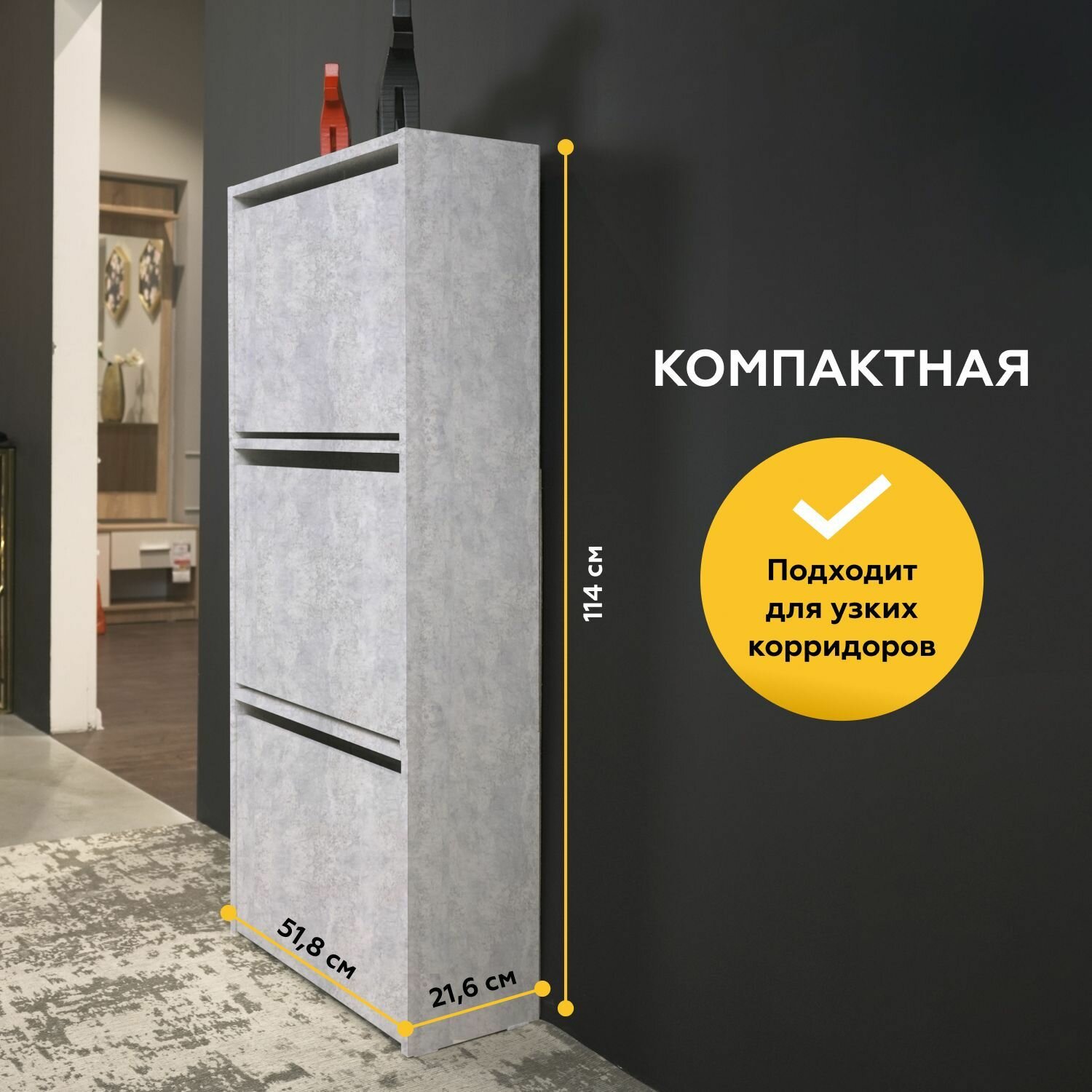 Обувница, на 12 пар обуви, высокая, ЛДСП, Серая интересное: