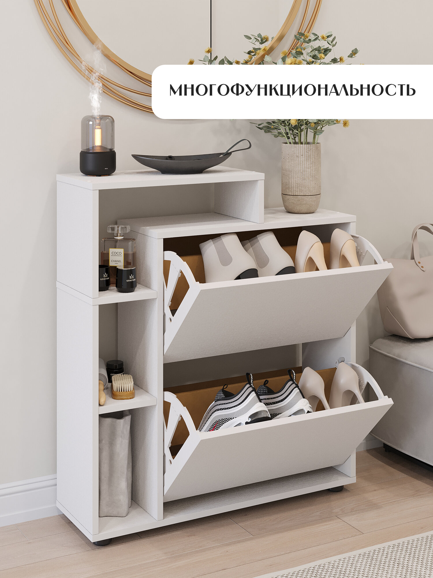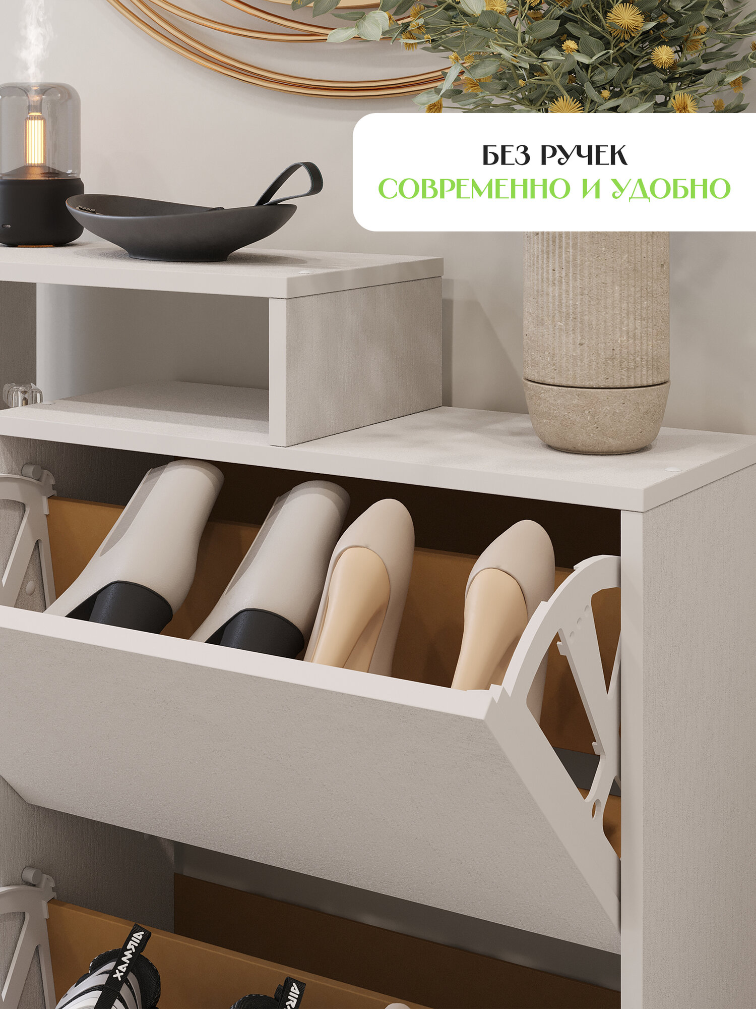 Обувница Letta Ultra Plus вертикальная 2 секции Белое тисн. 750х859х246 интересное: