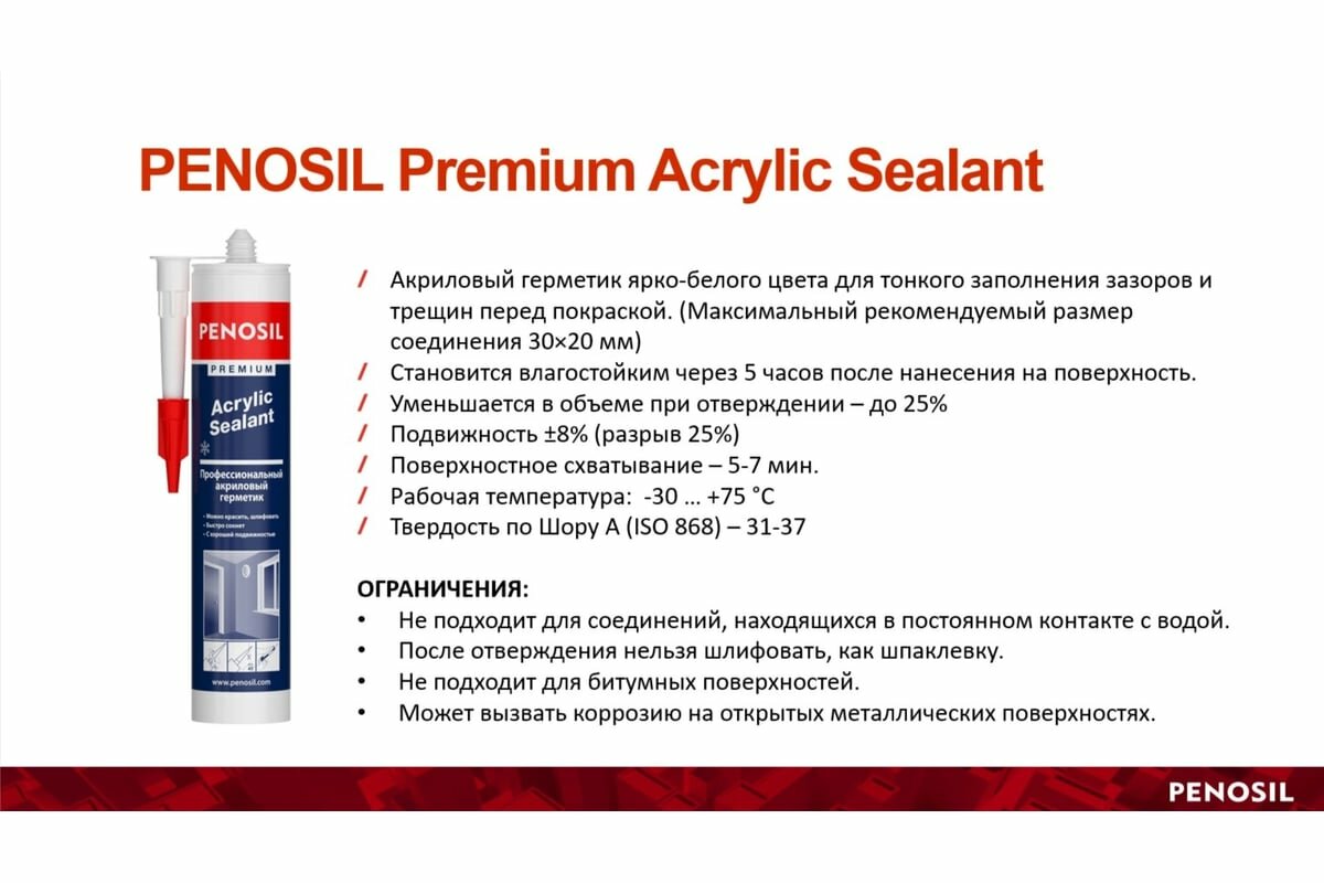 Герметик Penosil Premium акриловый белый 280мл интересное:
