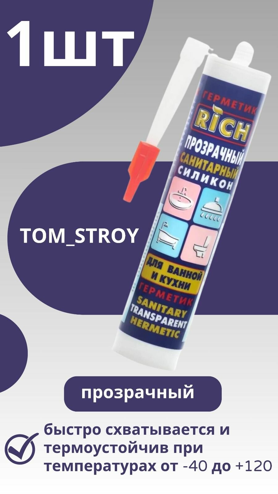 Герметик RICH санитарный силиконовый прозрачный 85 мл, для ванной и кухни