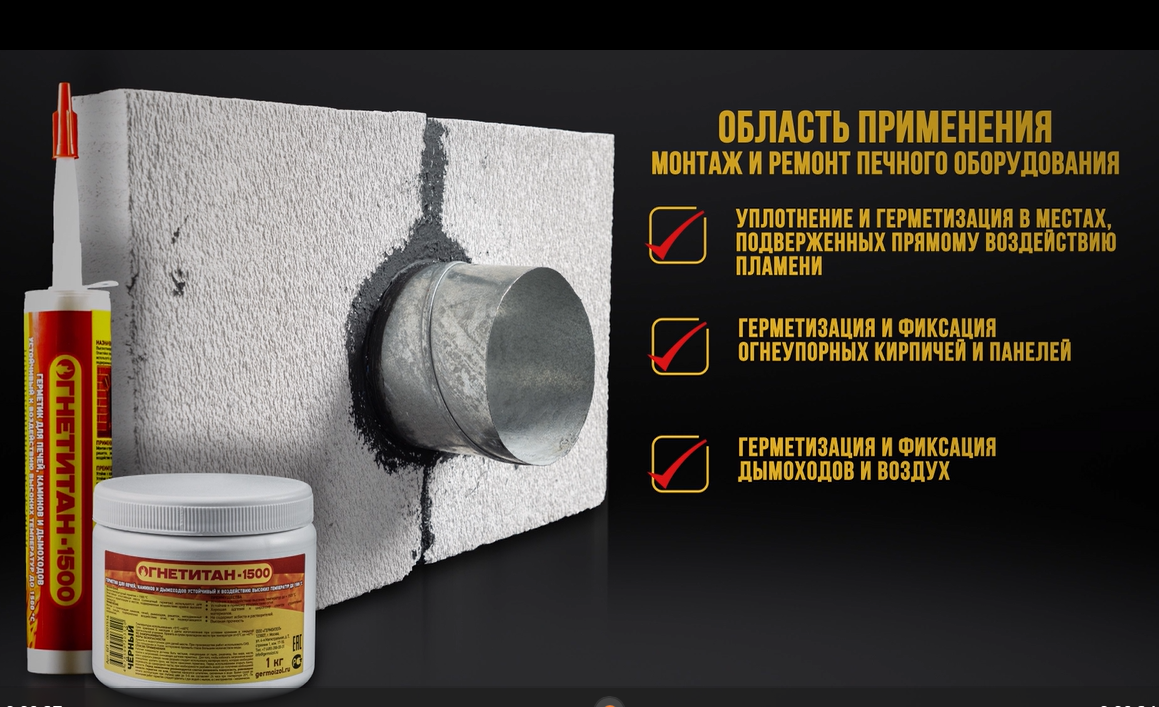 Герметик ОГНЕТИТАН-1500 высокотемпературный огнеупорный для печей и каминов 0.6кг интересное: