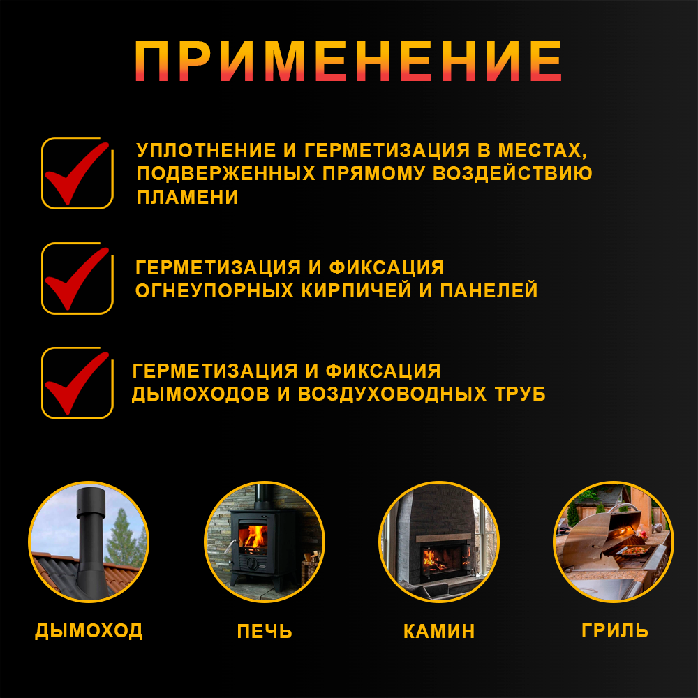 | Дополнительная информация | Высокотемпературный огнеупорный герметик Для печей и каминов |