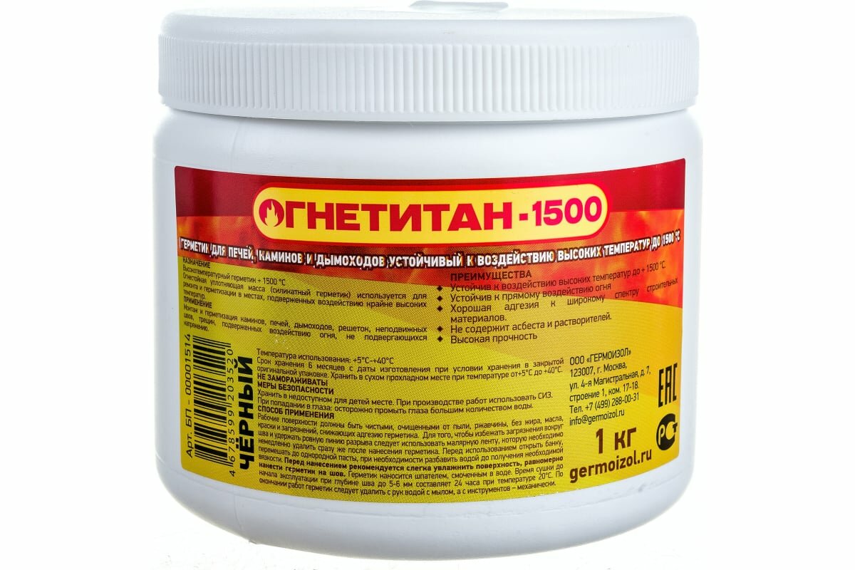 Герметик ОГНЕТИТАН-1500 высокотемпературный огнеупорный герметик для печей и каминов1 кг интересное: