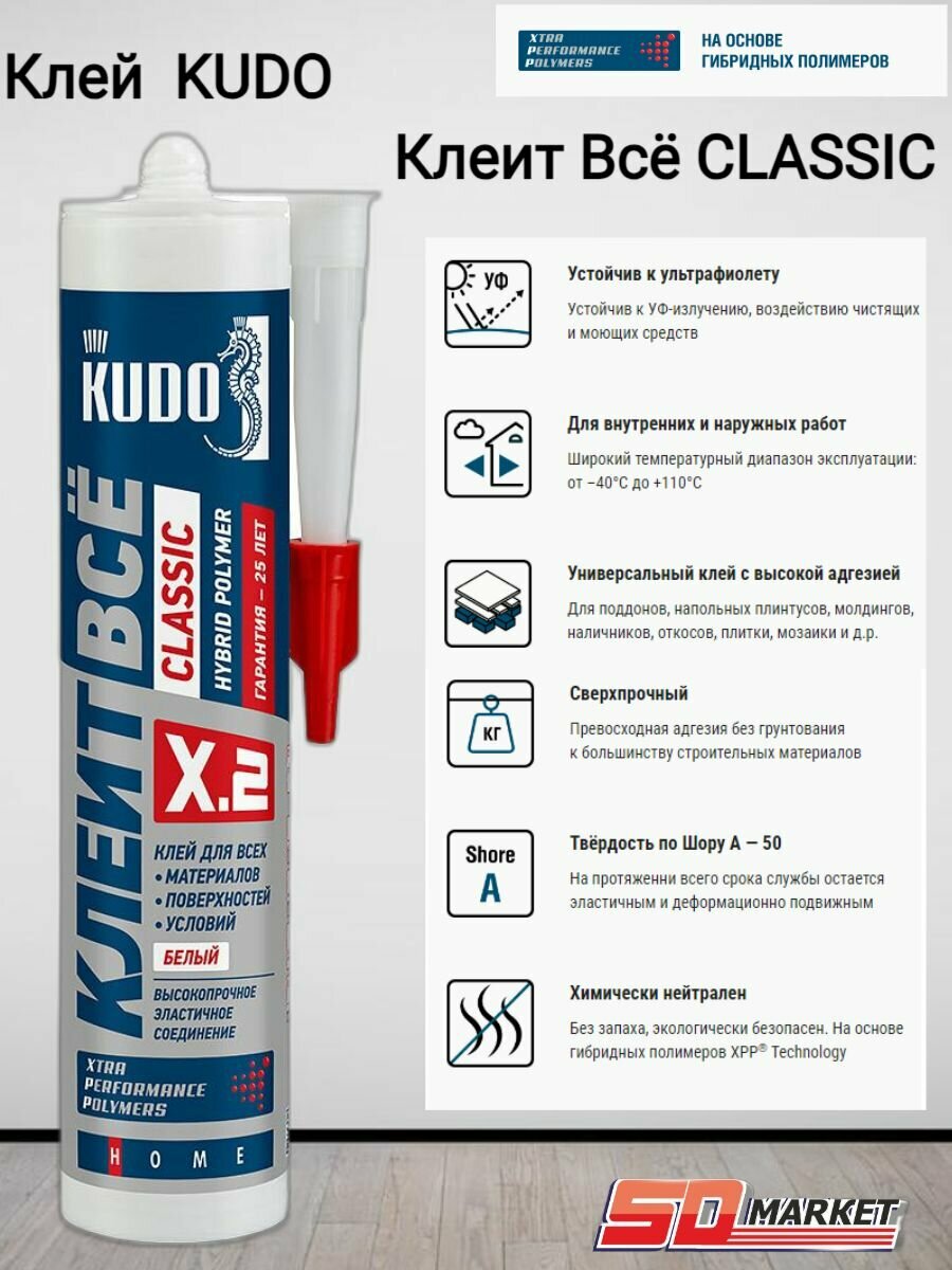 KUDO KX-4W Клей KUDO Клеит Все SPRINT на основе гибридных полимеров белый 280 мл KX-4W интересное: