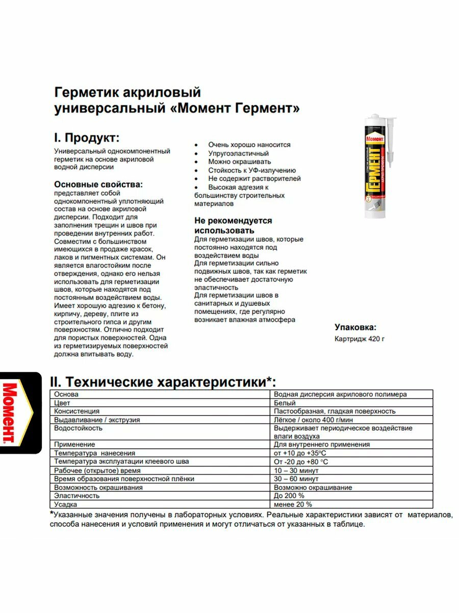 Момент Гермент Акрил Премиум Морозостойкий, 280 мл (12/960) . интересное: