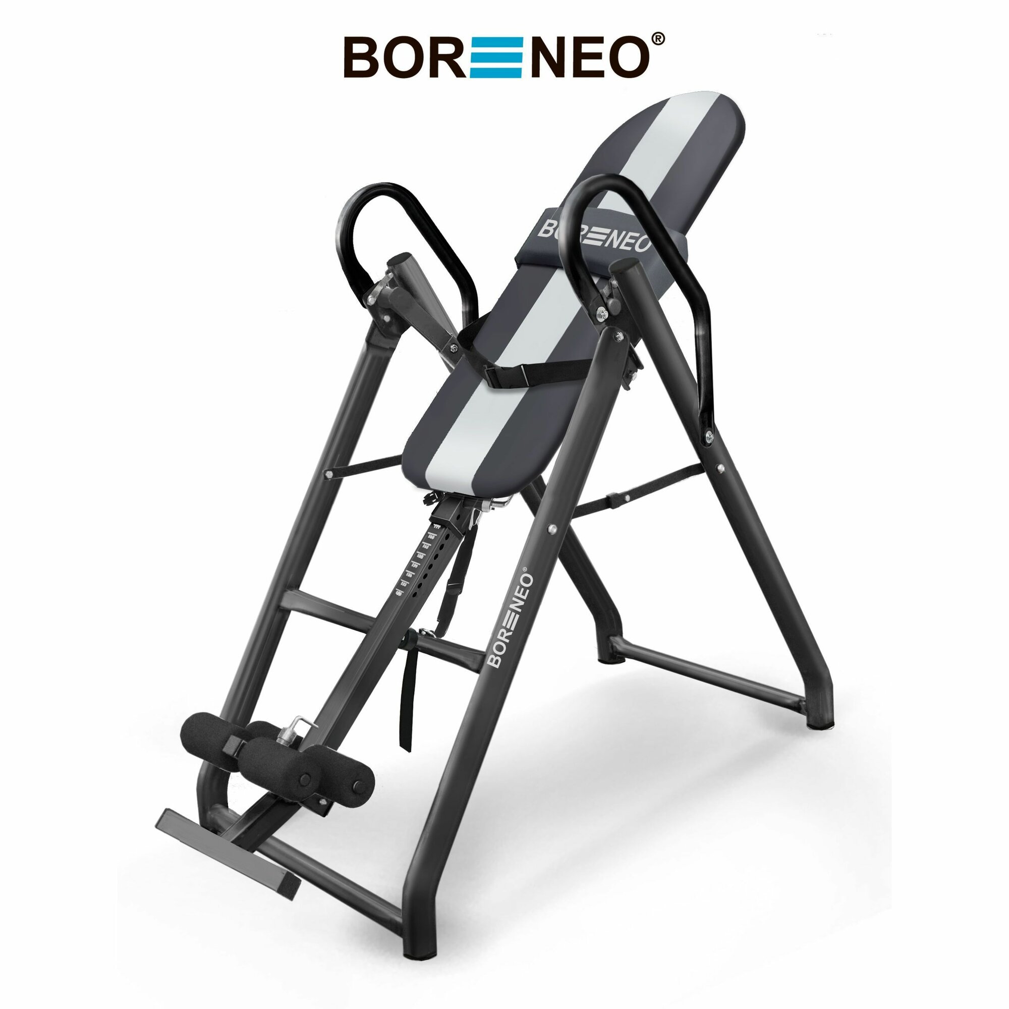Купить Инверсионный стол с подушкой для спины, позвоночника, тренажер от боли в спине Borneo Серо-серебристый