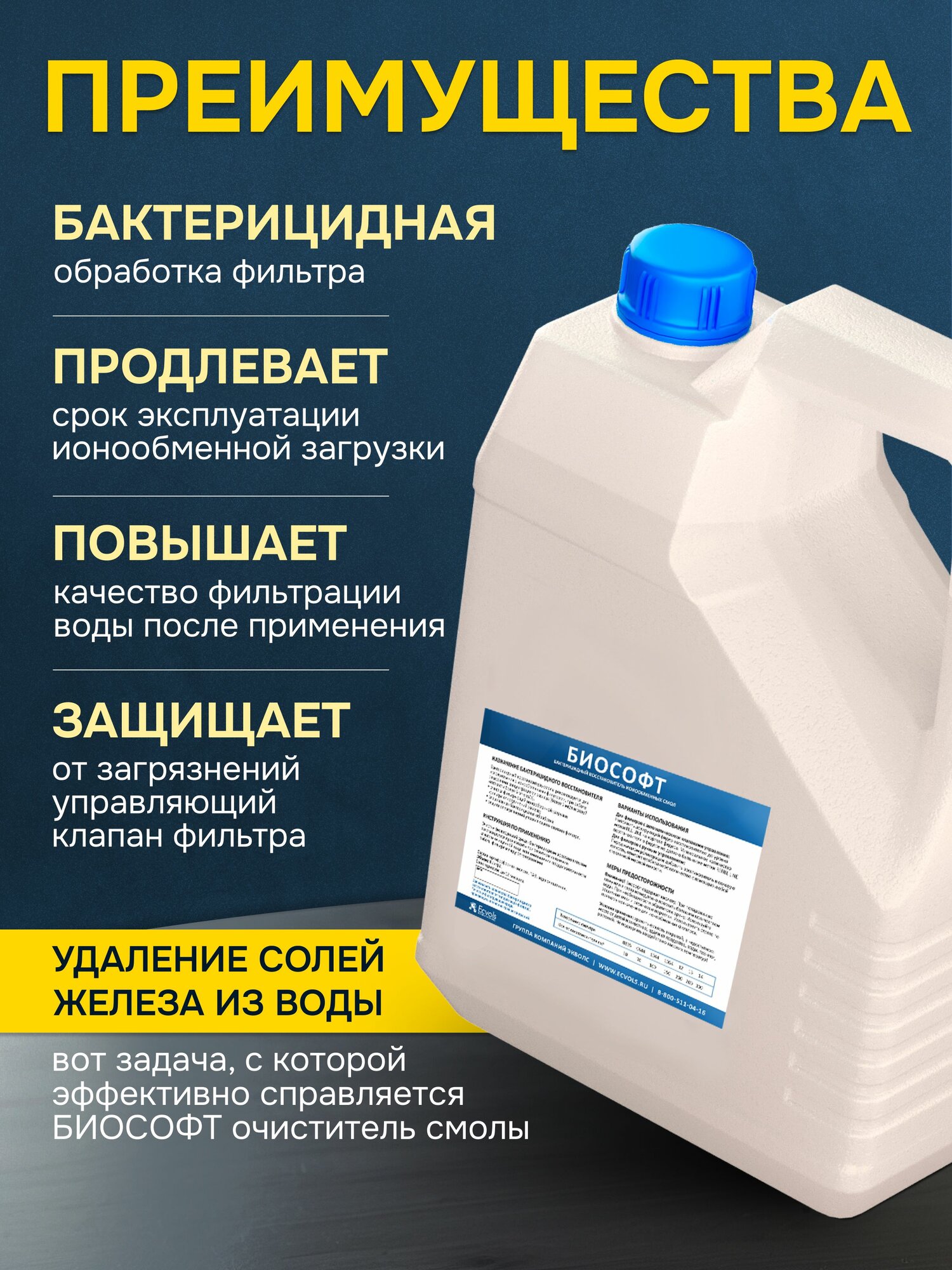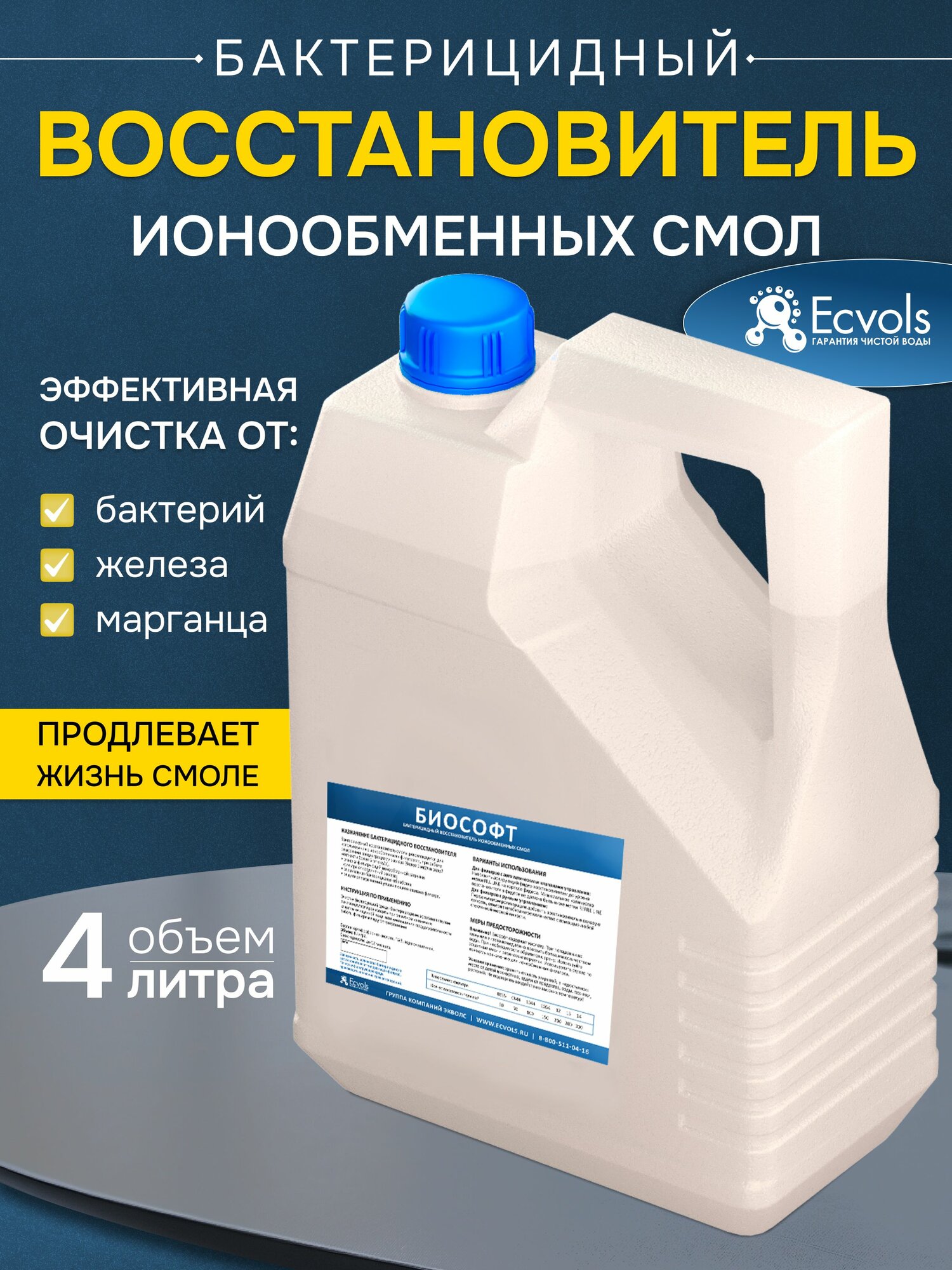 Купить Реагент Ecvols Biosoft Биософт для восстановления ионообменной смолы, очистка от железа, марганца и бактерий, 4 л
