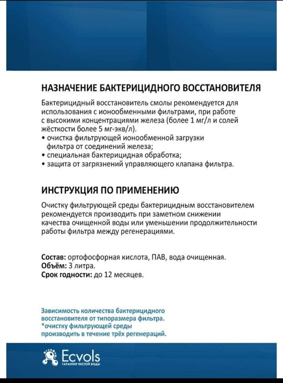 Реагент Ecvols Biosoft Биософт для восстановления ионообменной смолы, очистка от железа, марганца и бактерий, 4 л интересное: