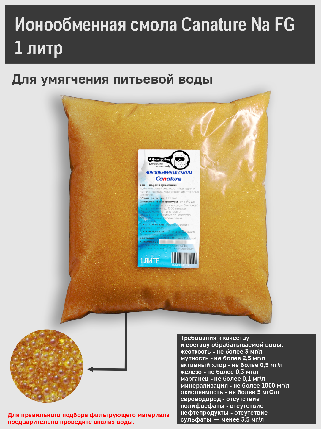 Ионообменная смола Canature Na FG 1000мл. сменная засыпка в картридж 10SL и 20SL пищевого класса для смягчения воды интересное:
