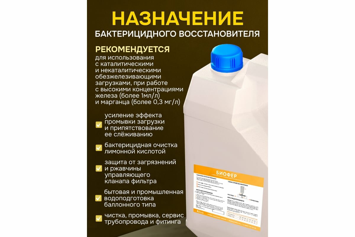 Ecvols Реагент BioFer для регенерации фильтра с обезжелезивающей загрузкой, 4 л 02.00013019 интересное: