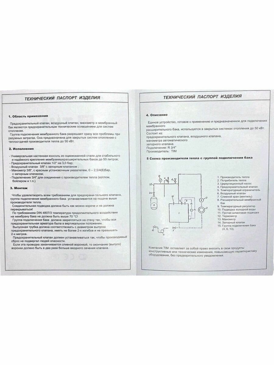 | Диаметр резьбы присоединения к расширительному баку, дюйм | 3/4 |