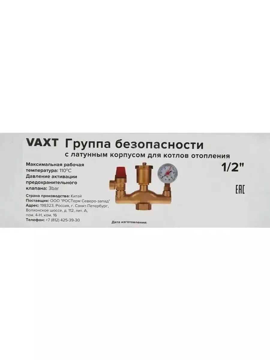 Группа безопасности 3 бар /латунная "классик" (с теплоизоляцией) VALFEX арт. VF.461.0.3P