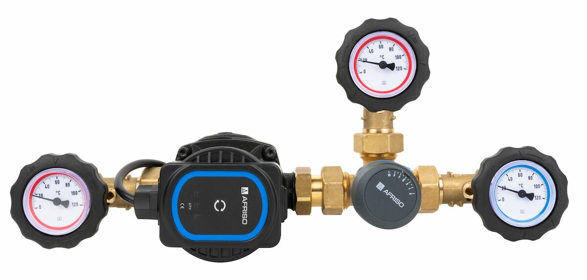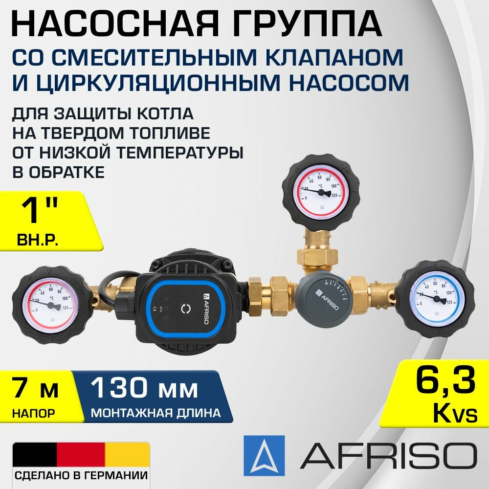 Насосно-смесительный узел G1" AFRISO: насос APH 15-7/130 мм, смеситель ARV Kvs 6,3 и термометры / Антиконденсатный модуль для защиты котла интересное: