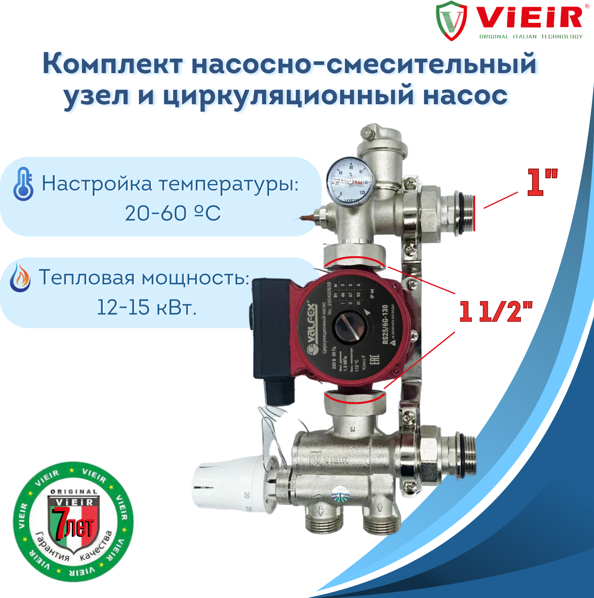 Купить Комплект насосно-смесительный узел теплого пола VR202 с насосом RS25/4G-130, VIEIR 1"