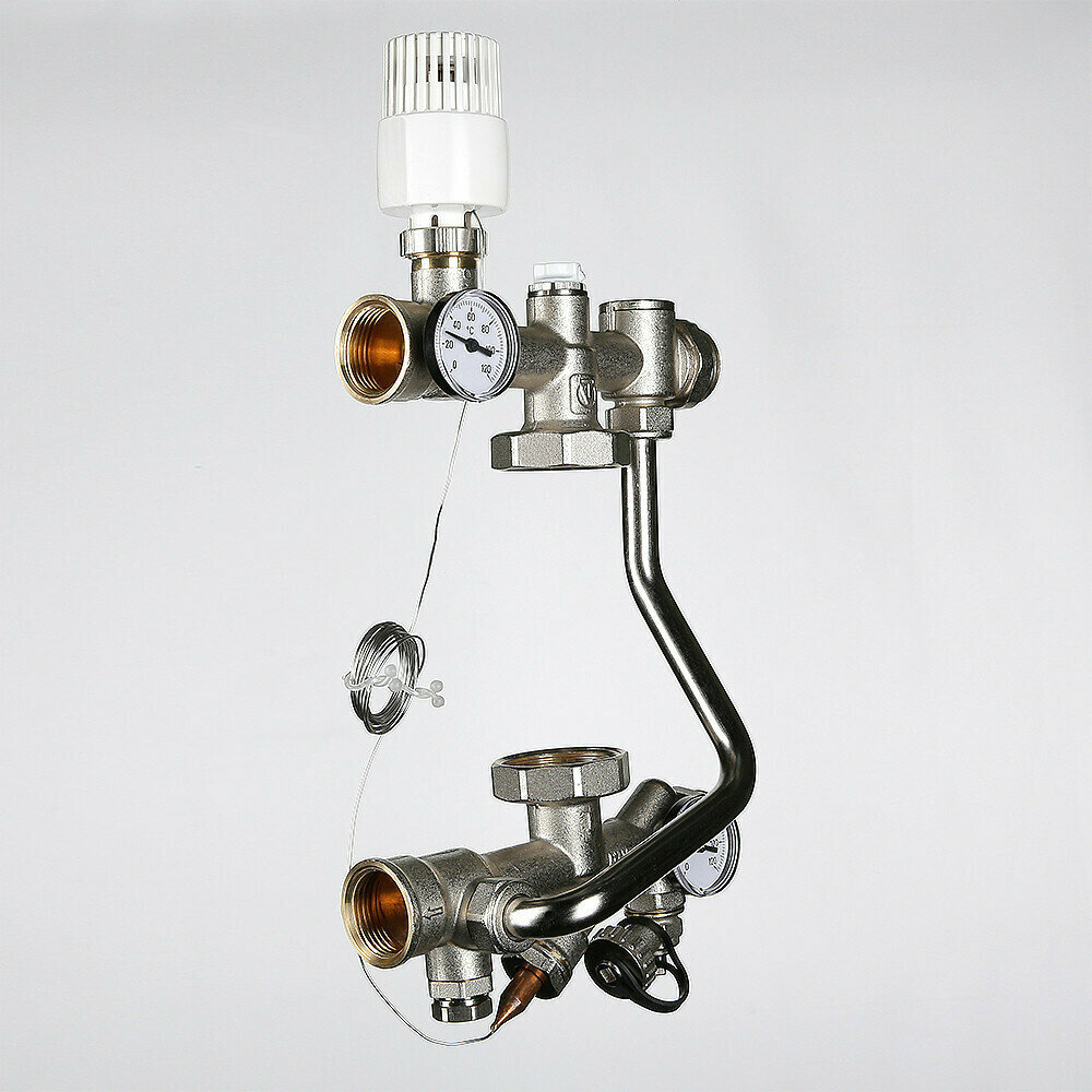 Купить Насосно-смесительный узел VALTEC TECHNOMIX с насосом 25-6/130 мм межосевое расстояние 200 мм, G1" и термоголовкой, VT.TECHNOMIX.0.130 + VRS.256.13.0