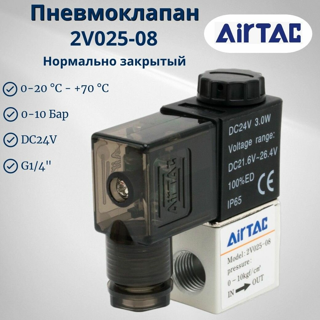 Купить Пневмоклапан электромагнитный 2V025-08 24VDC AIRTAC (2V02508BG) 2/2, Н.З