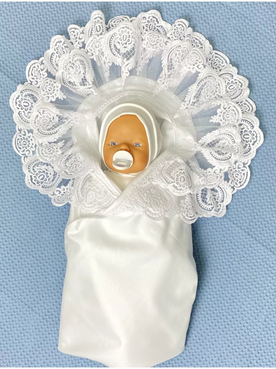 Белый кружевной уголок для конверта" от World of Kids для новорожденных на выписку из роддома интересное: