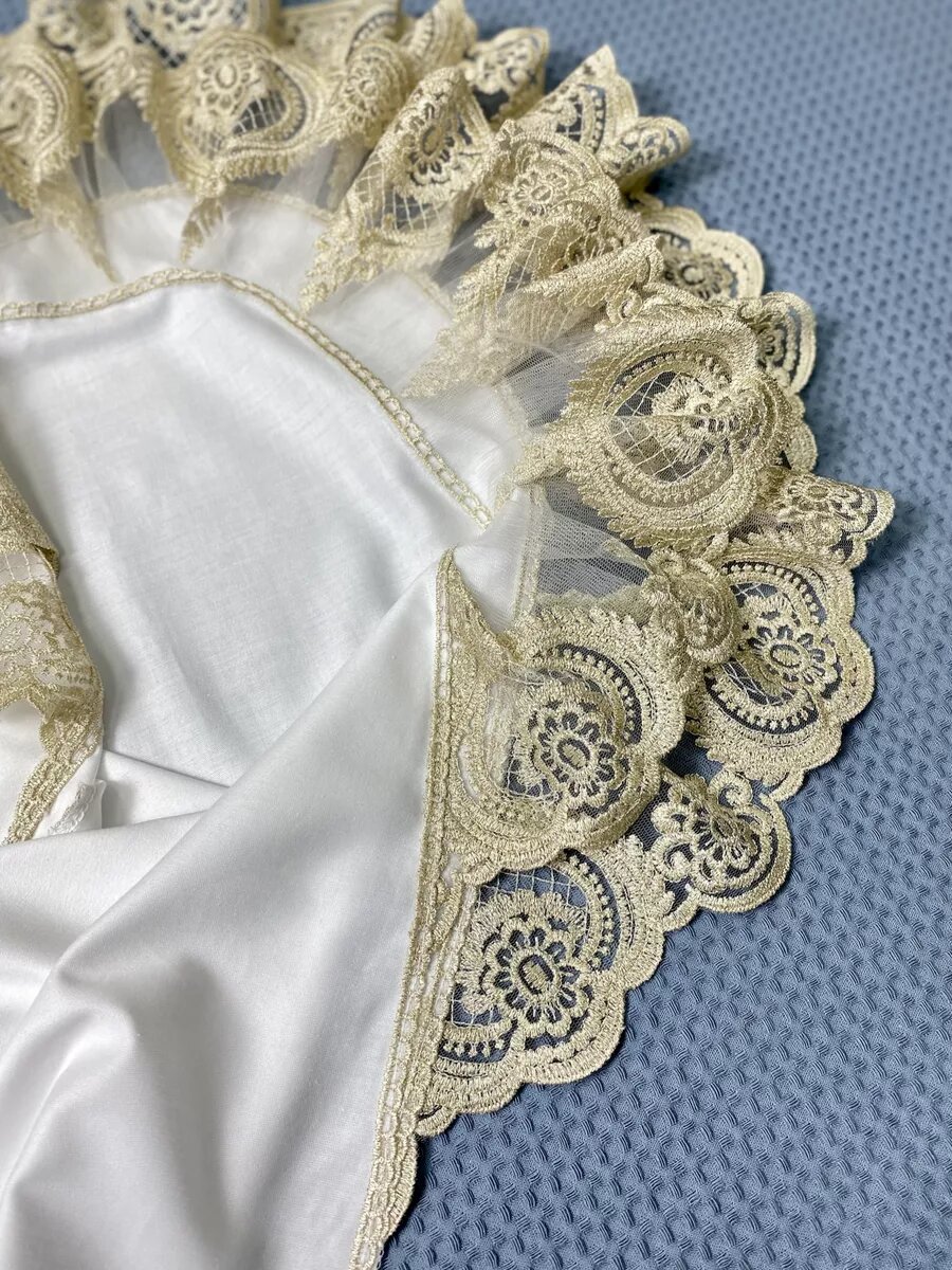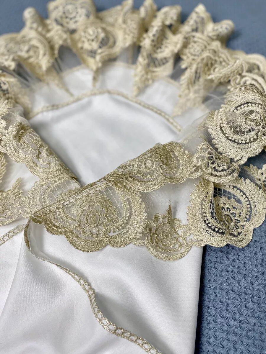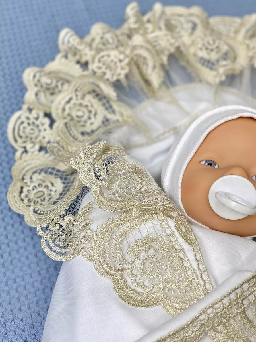 Золотистый кружевной уголок для конверта" от World of Kids для новорожденных на выписку из роддома интересное: