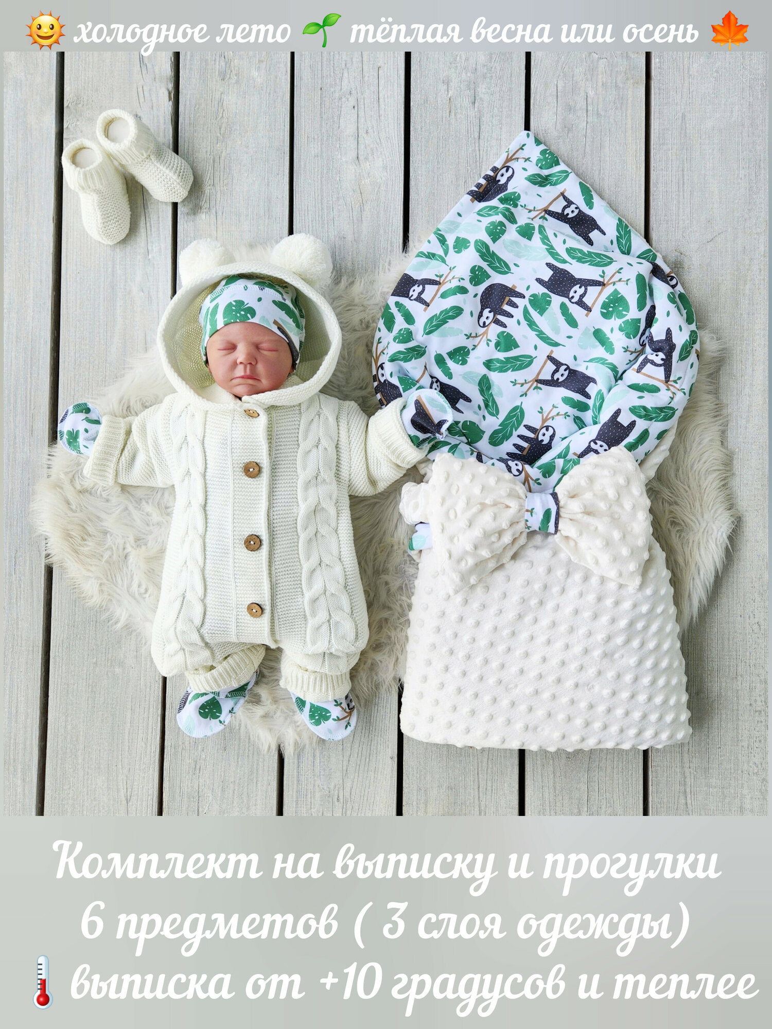 Комплект на выписку из роддома, 6 предметов, размер 56-62, ленивцы интересное: