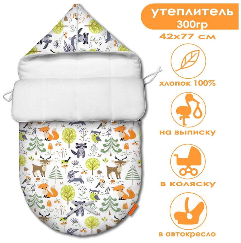 Конверт для новорожденного демисезонный Сказочный лес Белый интересное: