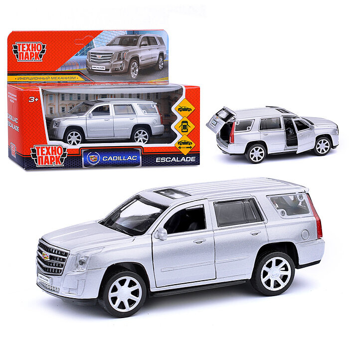 Модель Инерционная Технопарк Cadillac Escalade (12см, металл, открываются двери, серебристая, в коро