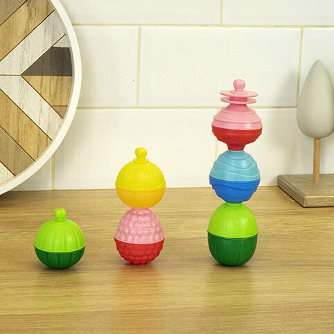 | Минусы: | Жёсткая посадка шарика в шарик, у ребёнка в 10 месяцев не хватает сил их даже разъединить! И шариков не 12 а 6 штук, а вот половинок действительно 12 штук! |