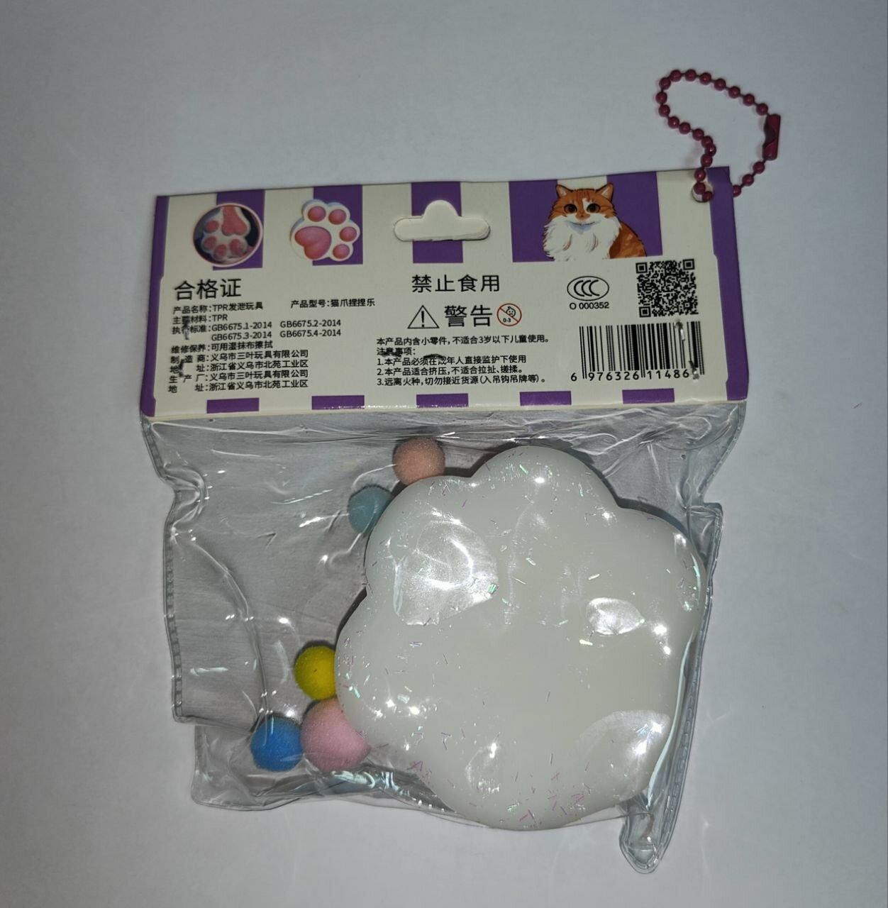 Игрушка-антистресс сквиш "Лапки кошечки", бело-фиолетовый