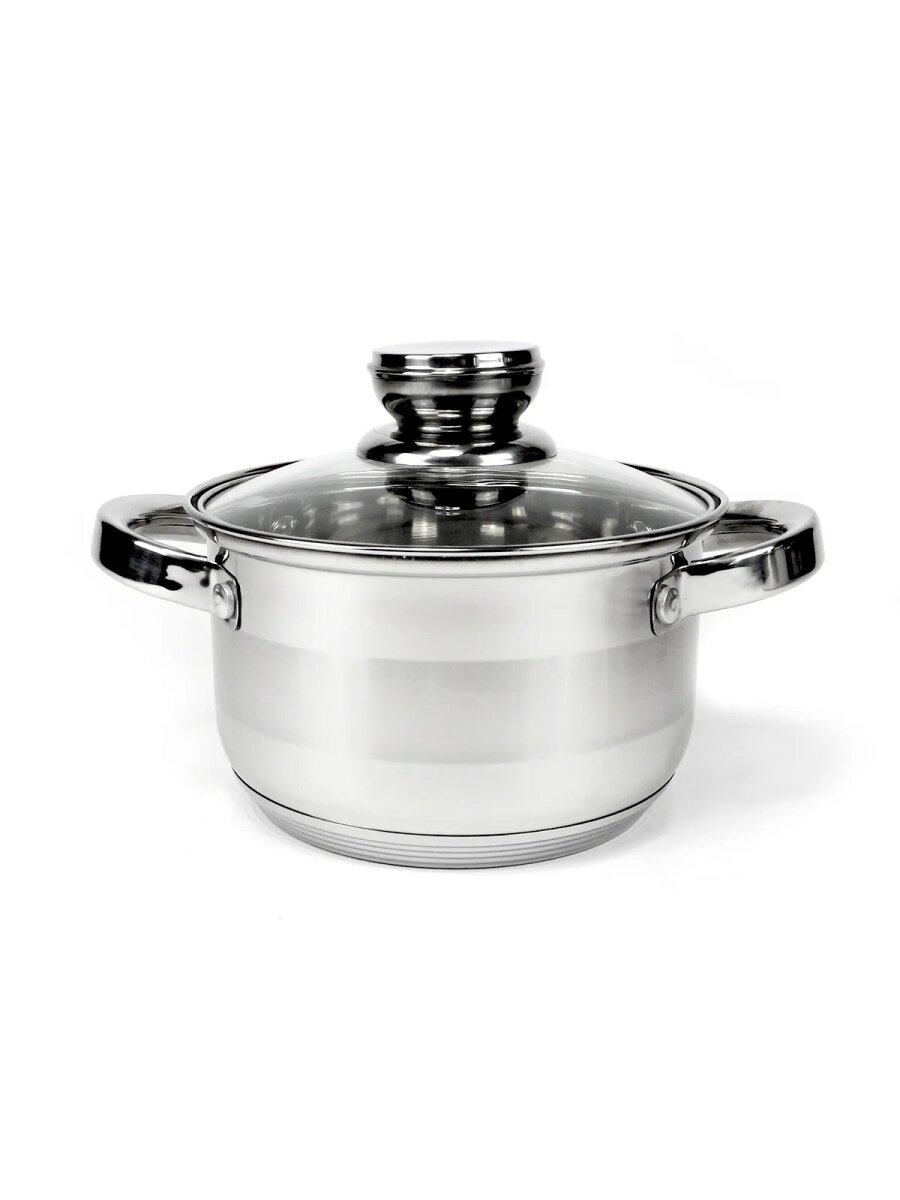 Набор посуды из нержавеющей стали - KL-4215 / Набор кастрюль из нержавеющей стали со стеклянной крышкой Kelli 6 предметов