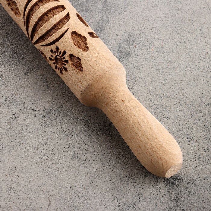 Купить Резная скалка с узорами "Воздушные шары" для выпечки, бук, 40 мм × 350 мм