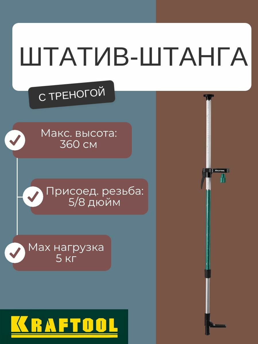 KRAFTOOL ТР 36, элевационная распорная наборная штанга-штатив с треногой (34823)