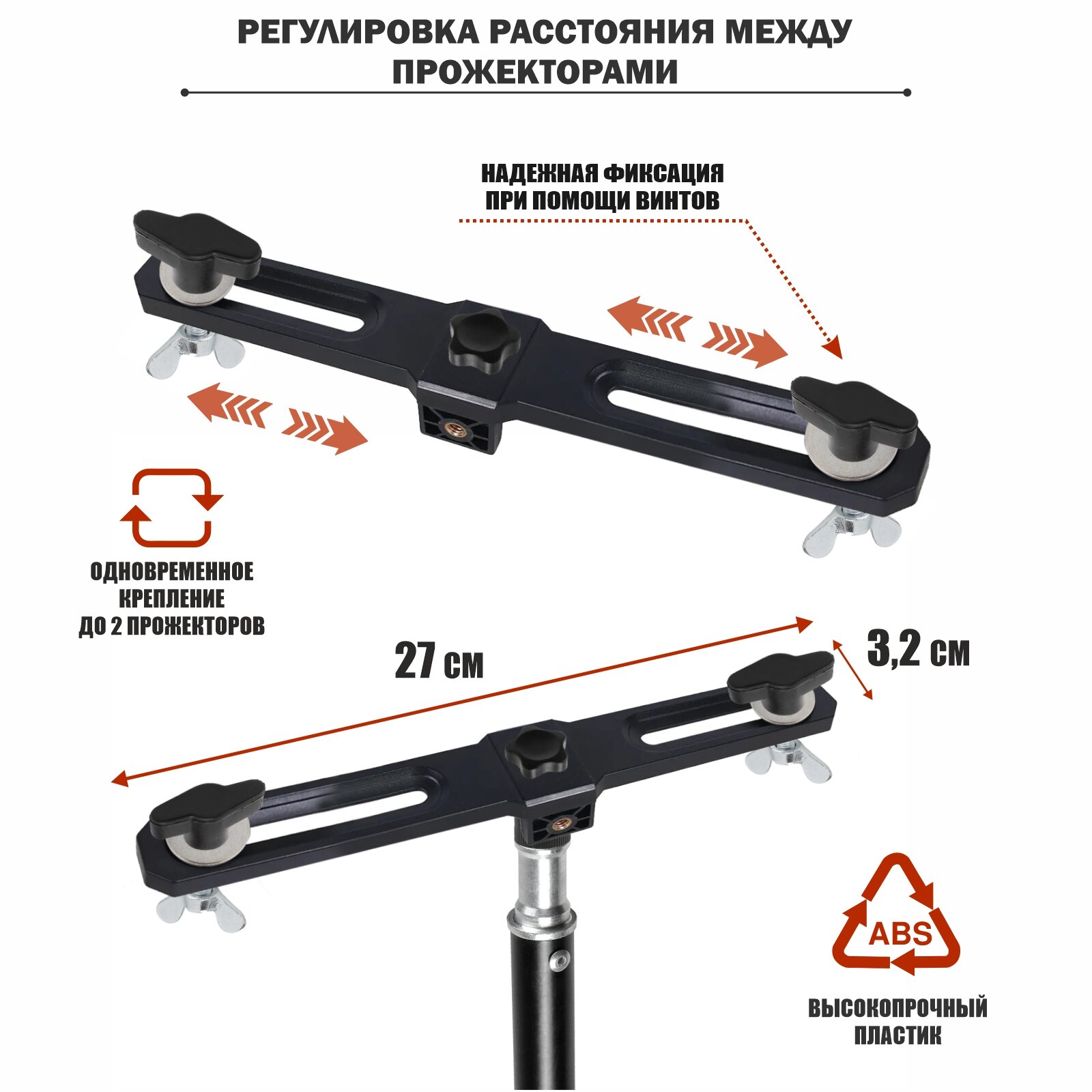| Дополнительная информация | Уникальность данного оборудования заключается в том, что возможно крепление 2 прожекторов одновременно по боковым точкам крепления или одного прожектора по центру. |