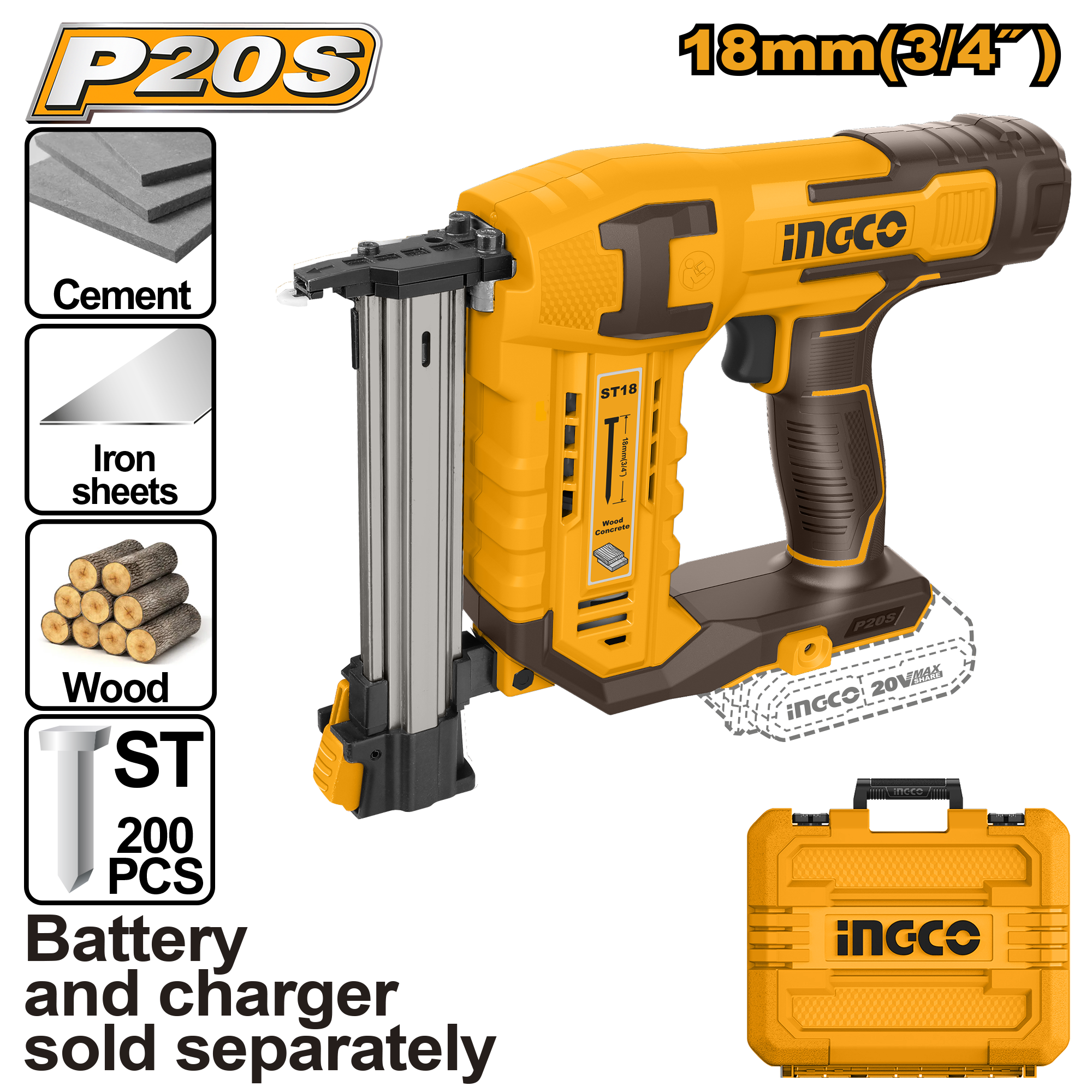 Купить Аккумуляторный гвоздезабиватель нейлер INGCO CSTLI3805 INDUSTRIAL 20 В ST 18 мм