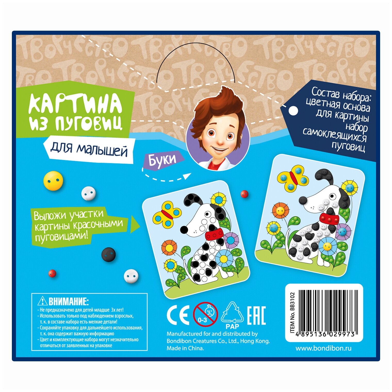 Купить Набор для творчества BONDIBON Картина из пуговиц для малышей. Собачка (ВВ3102)