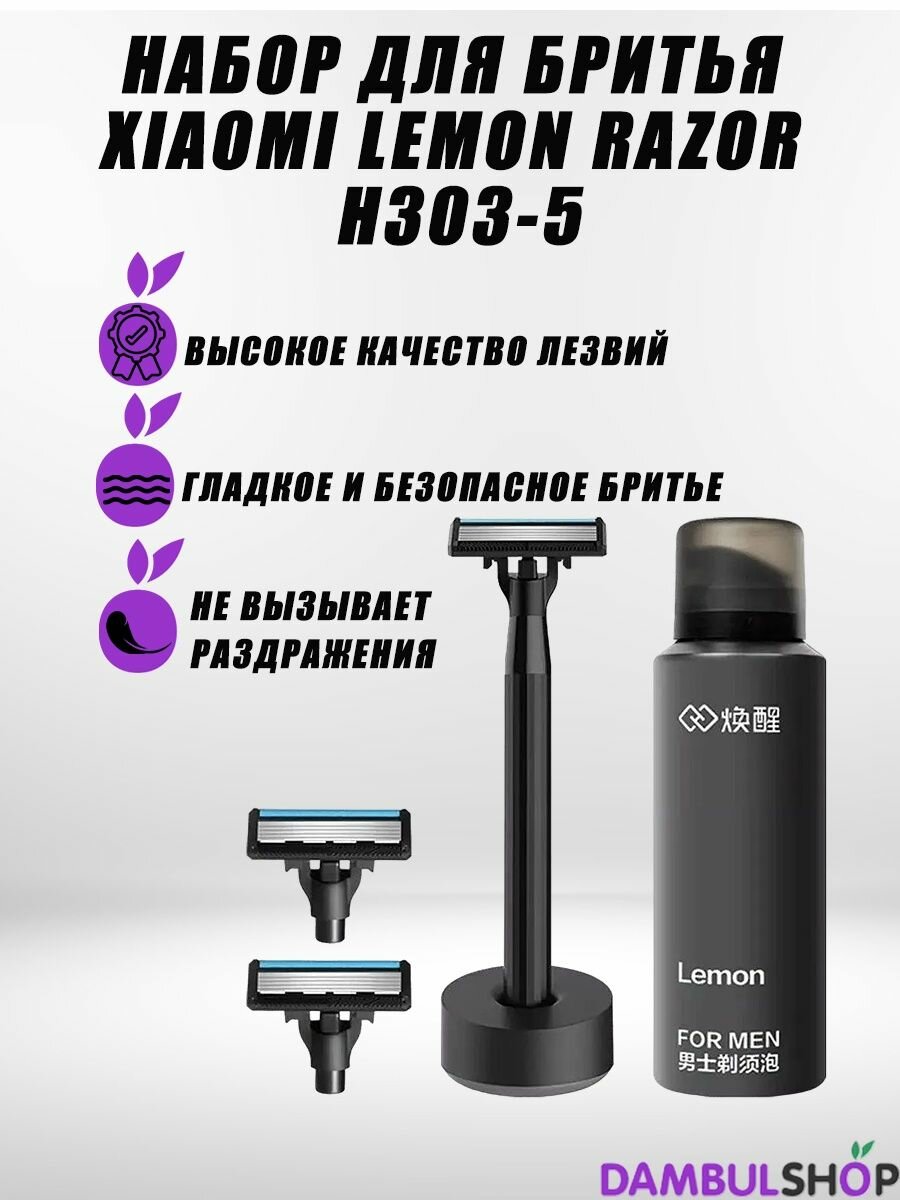 Набор Xiaomi пена, подставка, бритвенный станок Lemon H600, черный