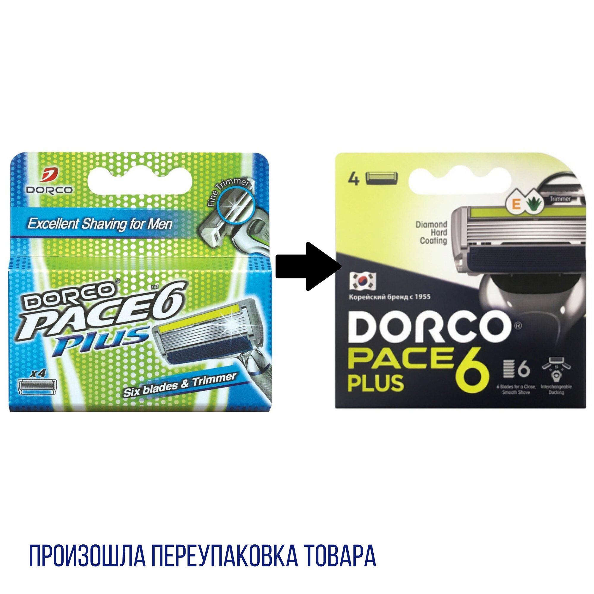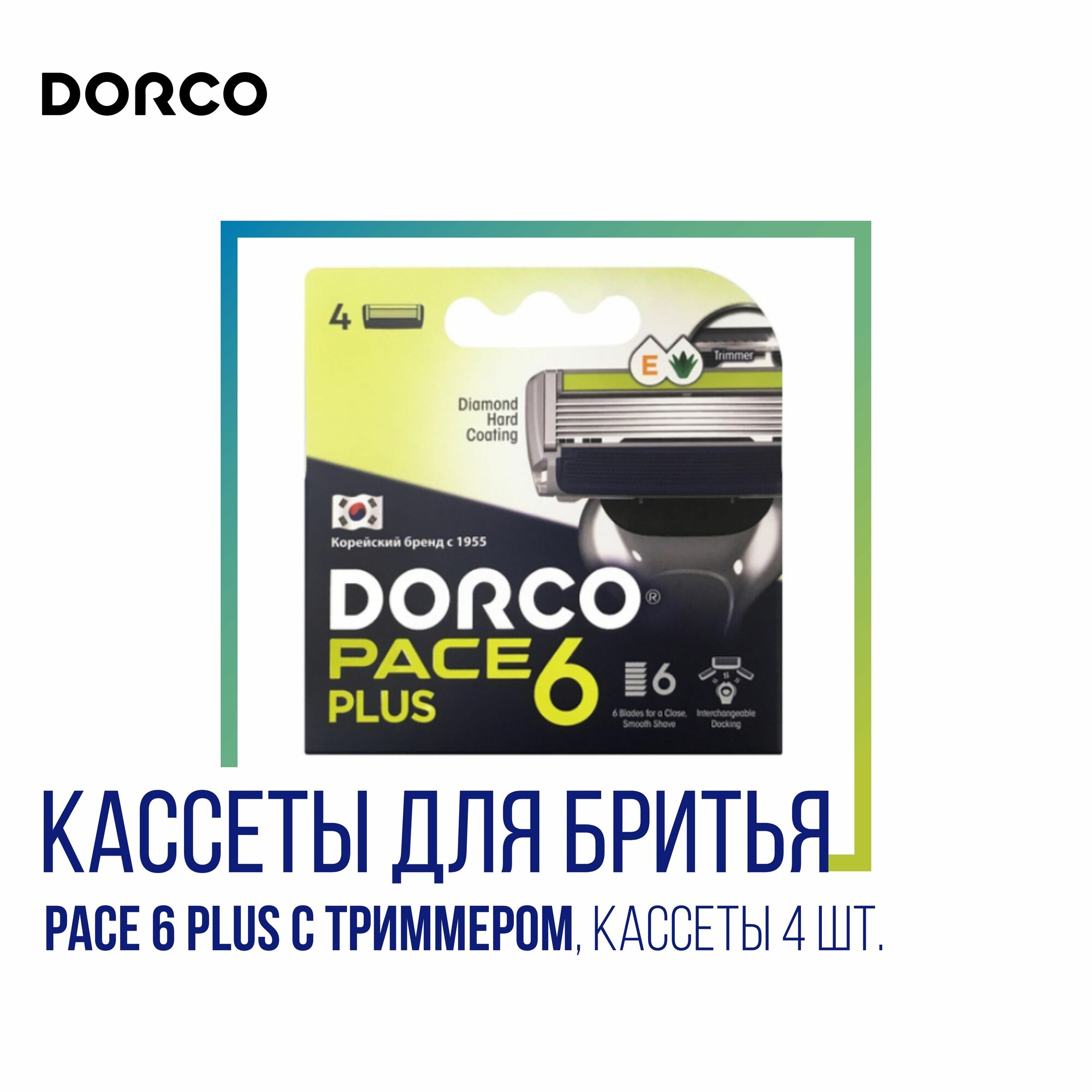 Купить DORCO PACE 6 PLUS NEW сменные кассеты для бритья, 6 лезвий + 1 лезвие-триммер 4шт