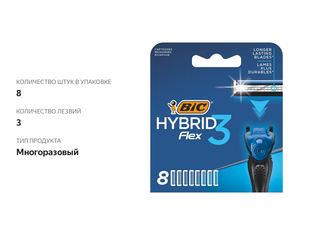 Кассеты для бритвы Flex 3 Hybrid- 8шт интересное: