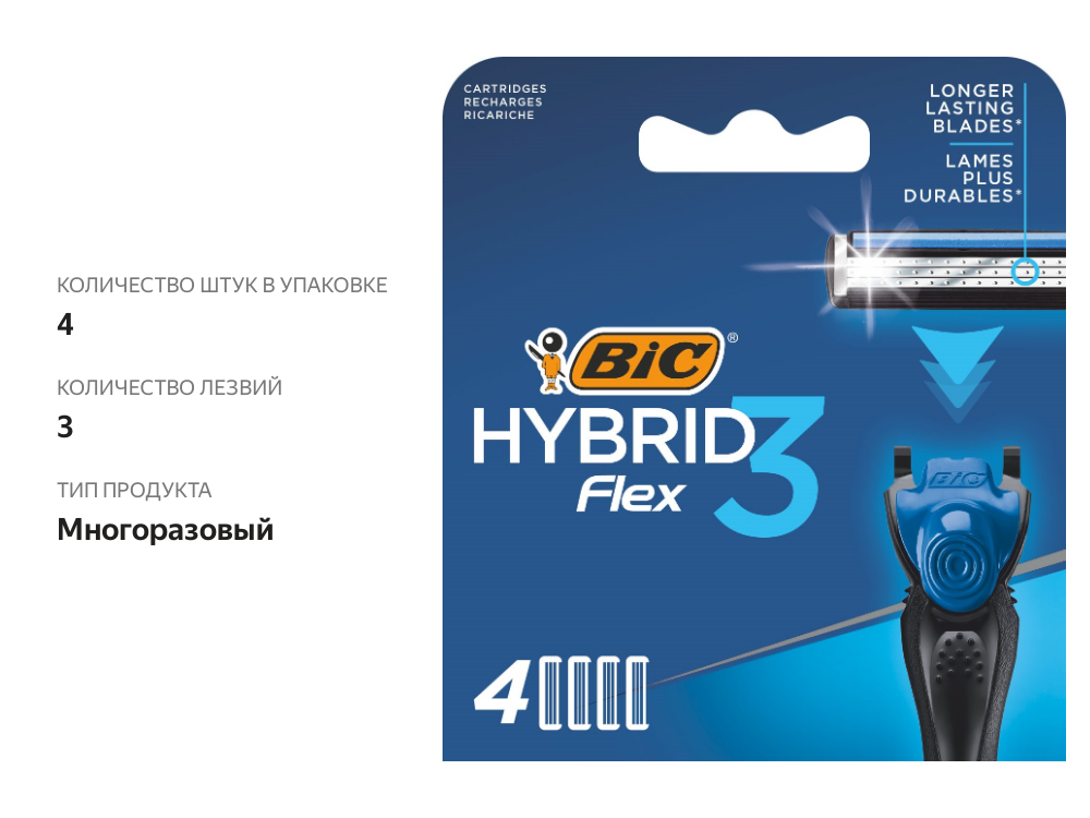 Сменный кассеты для бритвы BIC Flex 3 Hybrid 4 шт интересное: