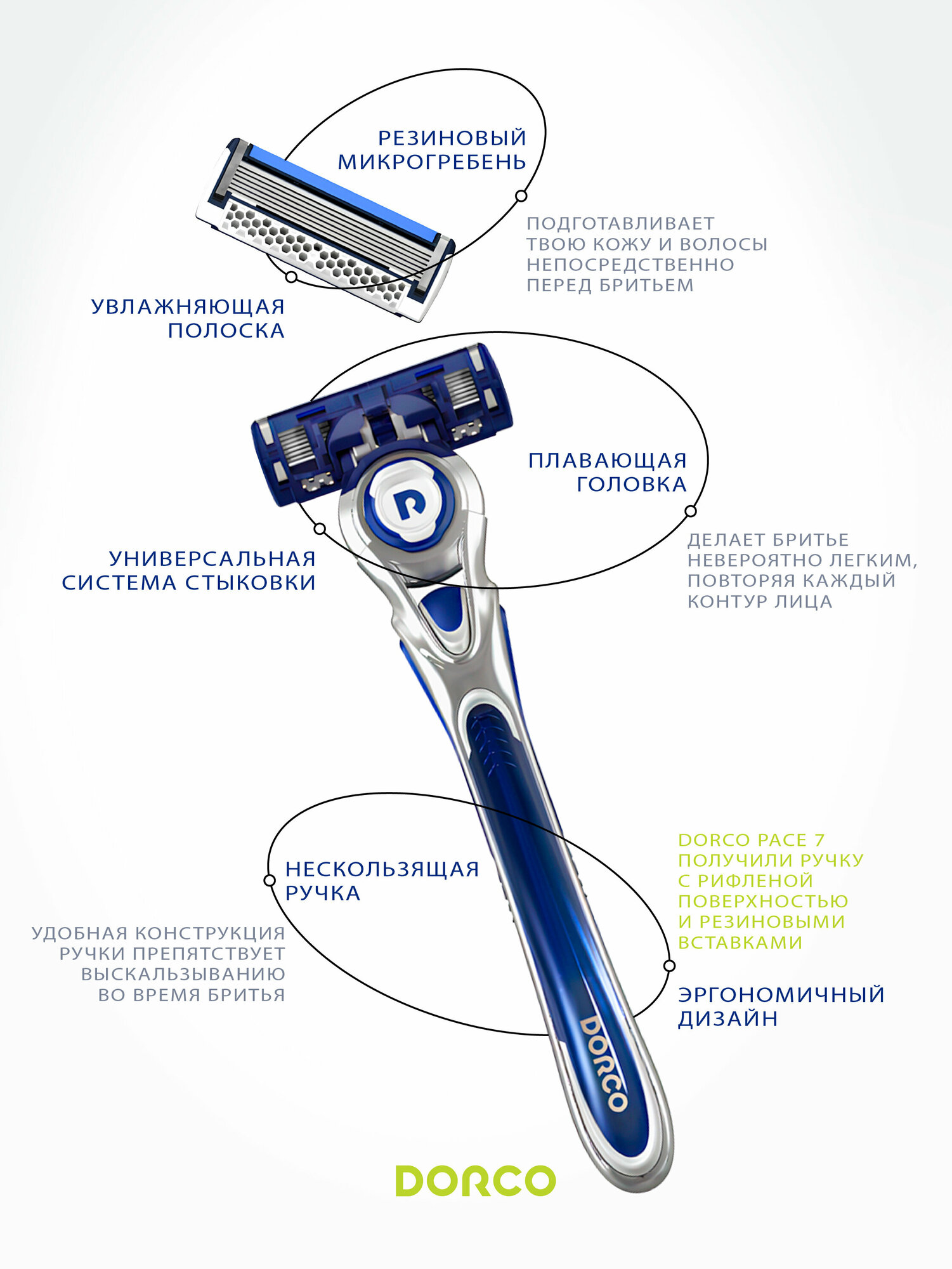 Бритвенный станок DORCO Pace 7+ 2 кассеты интересное: