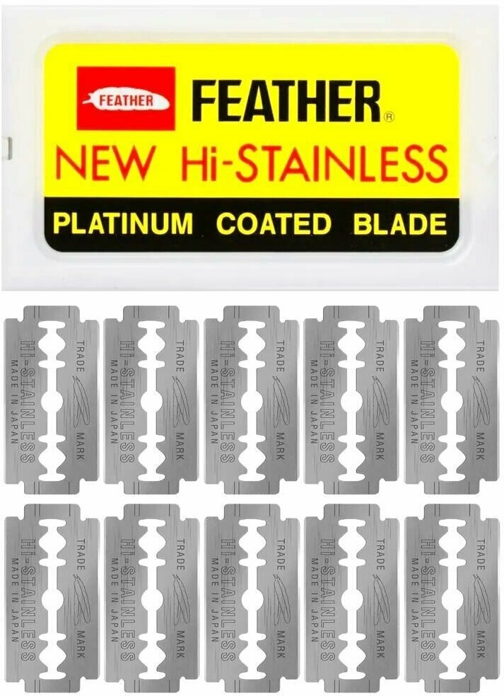 Купить Лезвия для Т-образной бритвы Feather New Hi-Stainless, мужские, двусторонние, сменные, японские, 10 шт