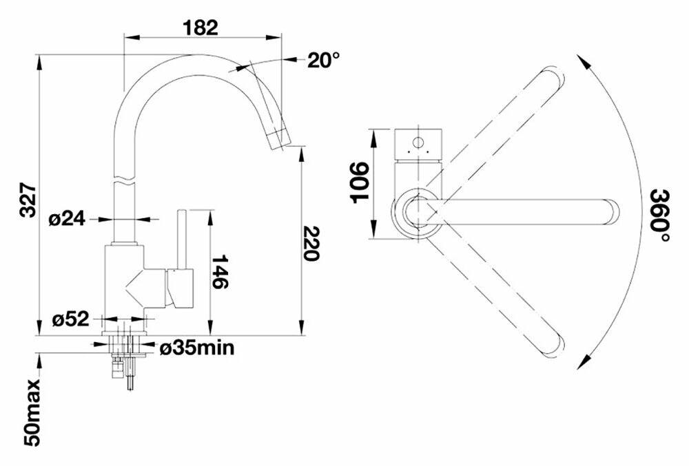 | Длина излива | 182 мм |