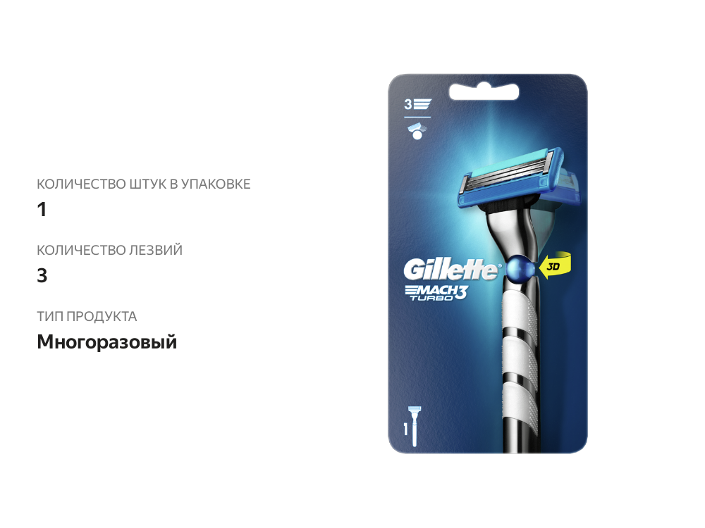 Купить Бритвенный станок многоразовый GILLETTE Mach 3 Turbo 1 кассета