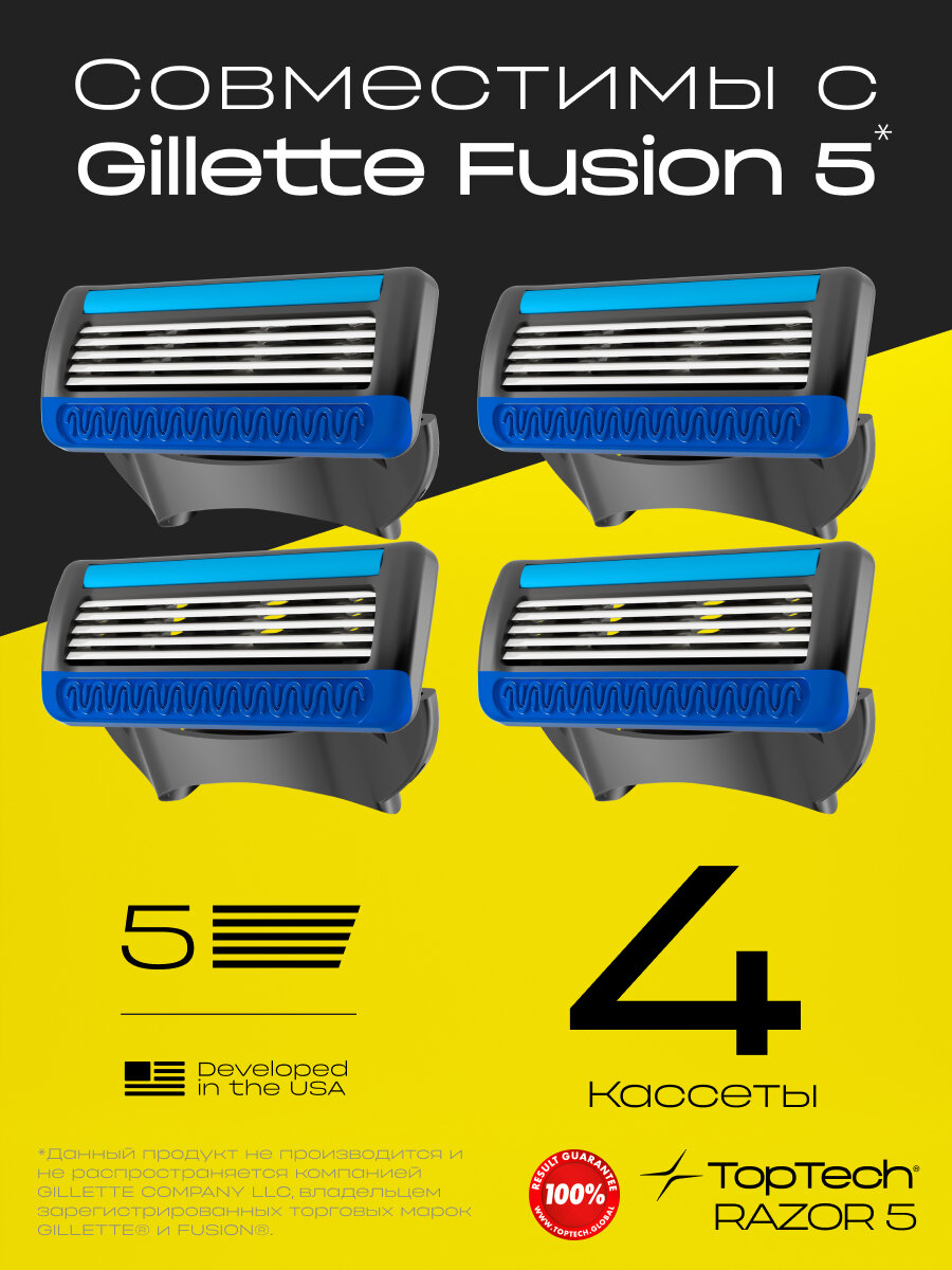 Купить Сменные кассеты для бритья TopTech Razor 5. Совместимы с Gillette Fusion5. 4шт