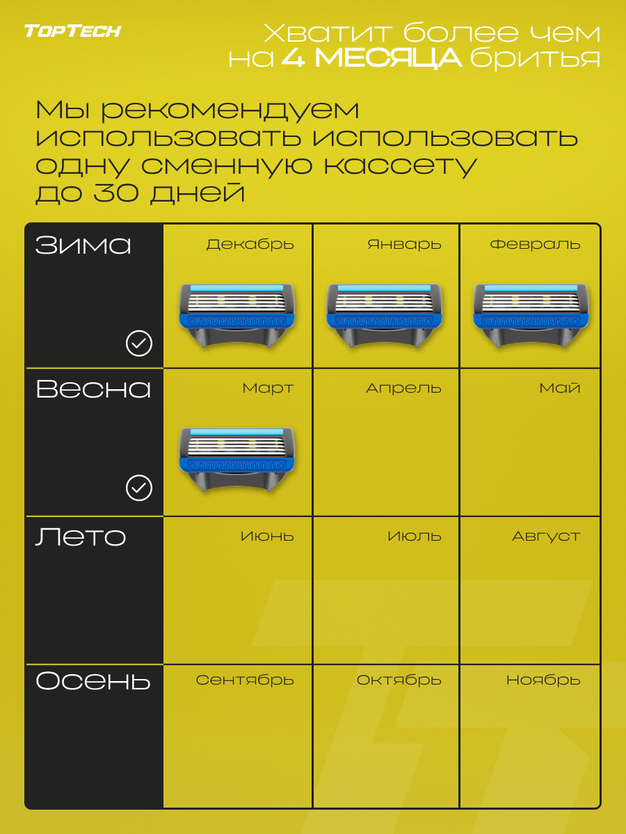 Сменные кассеты для бритья TopTech Razor 5. Совместимы с Gillette Fusion5. 4шт интересное: