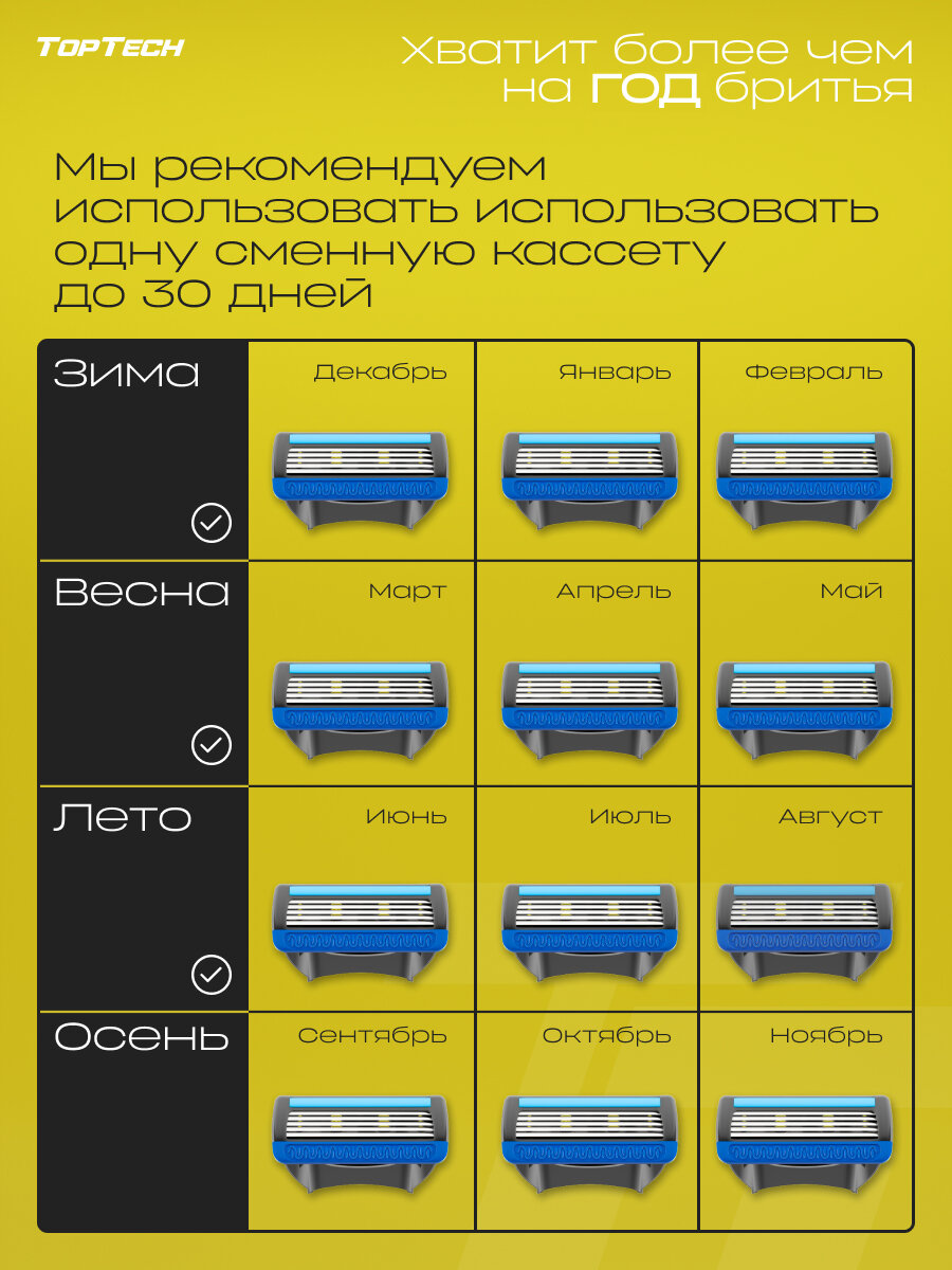 Сменные кассеты для бритья TopTech Razor 5. Совместимы с Gillette Fusion5. 12шт. интересное: