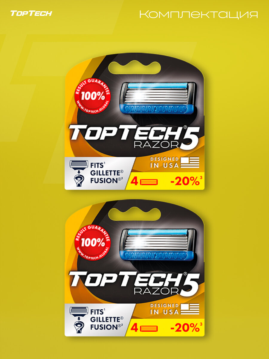 Купить Сменные кассеты для бритья TopTech Razor 5. Совместимы с Gillette Fusion5. 8шт.