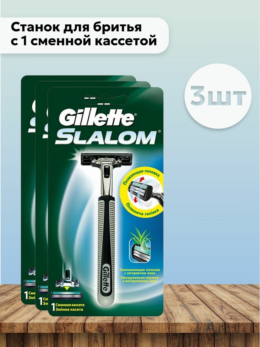 Бритвенный станок Gillette, Slalom с 1 сменной кассетой, 3 шт интересное: