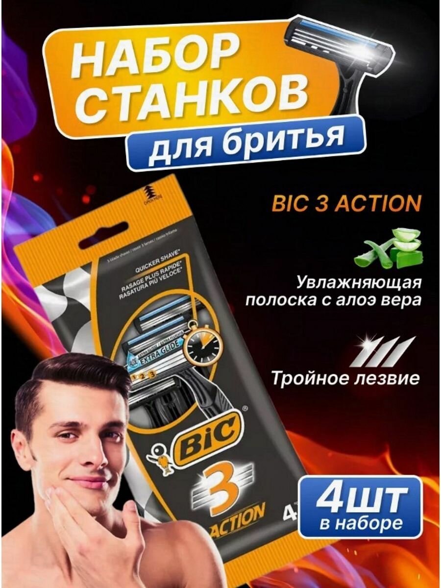 Станок для бритья одноразовый Бик 3 Action упаковка 4шт интересное: