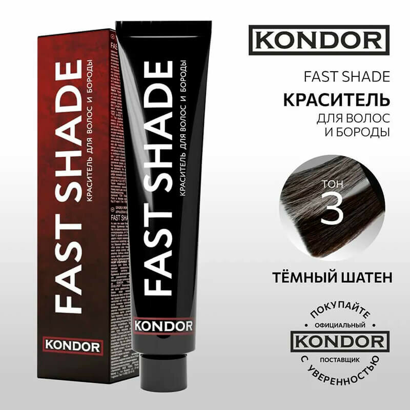 KONDOR, Краситель для волос и бороды, тон 3 тёмный шатен «FAST SHADE», 60 мл